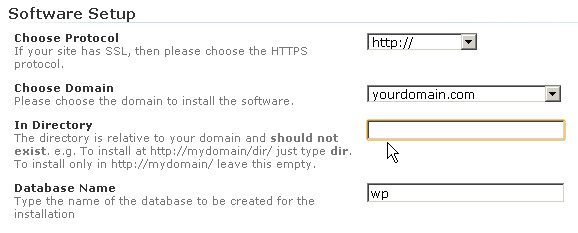 в корень домена yourdomain.com, то оставьте поле In Directory пустым.