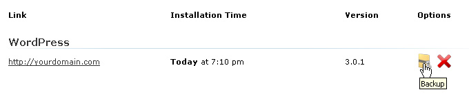 | Если вы решили сделать резервную копию сайта, Softaculous спросит,